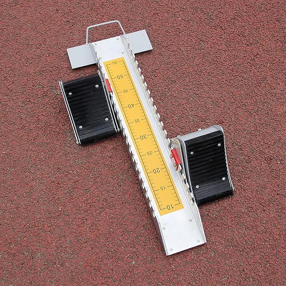 Adjustable 6-angle aluminum starting blocks give sprinters optimal launch positions on any track surface – improve starts, speed, and technique with stable, professional-grade equipment.