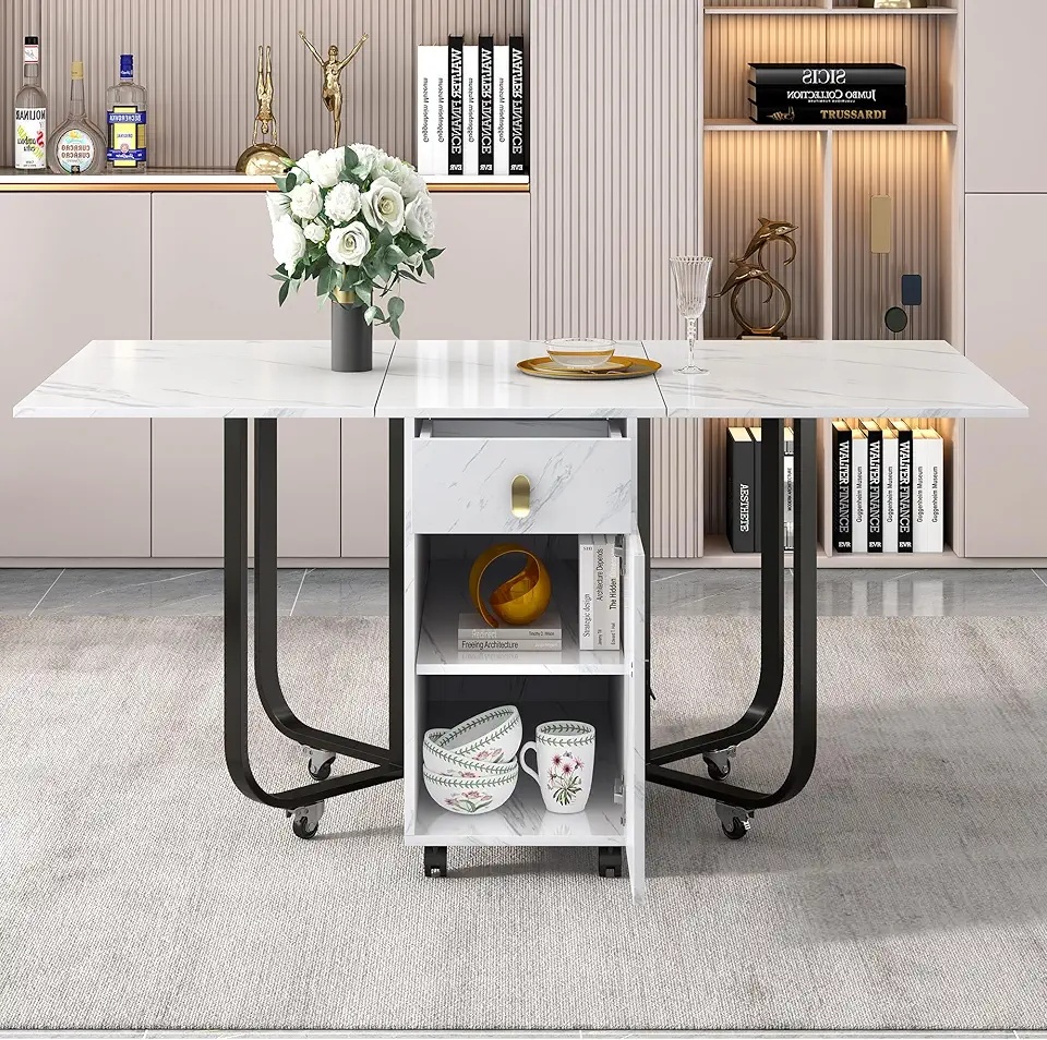 HYUIO Multifunctional Folding Dining Table with Cupboard 2 Drawers and Space Saving Design Ideal for Small Kitchens (Black)